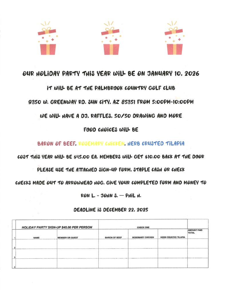 Stop by the Arrowhead Harley-Davidson® for membership forms. Our chapter membership runs from Jan 1 to Dec 31 of the current year. The cost for being a Chapter Member is $25/year. Please turn your completed forms into Motor Clothes, Ron Long, or any Chapter Officer.